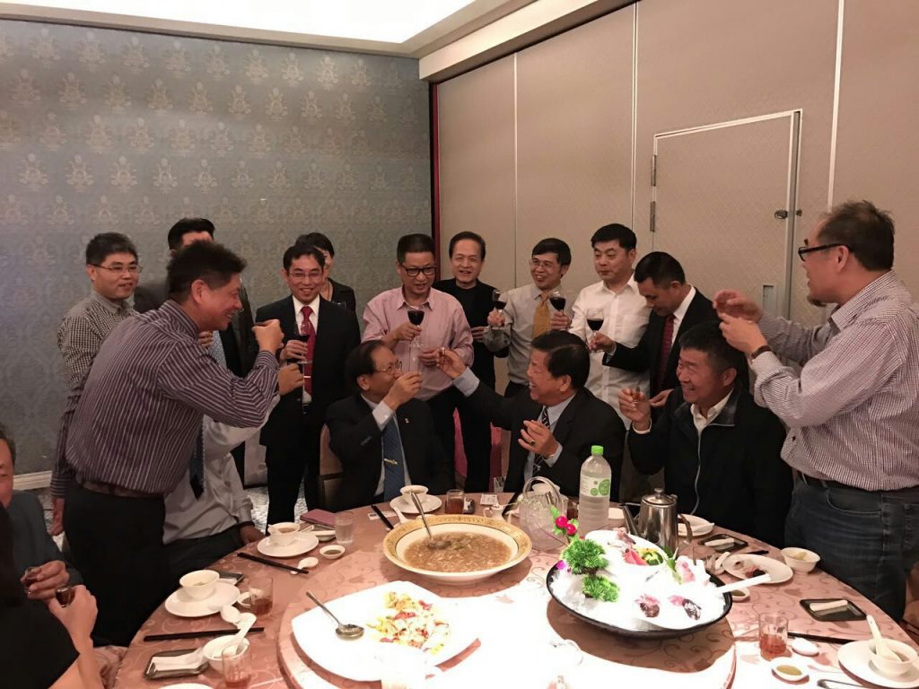 考察團隨後前往臺中市,與臺中市商業總會進行聯誼。臺中市議員謝志忠在鼎豐會館設宴歡迎考察團。與會者有商業總會理事長、利茗機械股份有限公司董事長林秋雄,榮譽理事長、高威建設有限公司董事長宋逢吉,常務理事、仁友茗茶董事長遊振幹,雅思特(Yest)企業有限公司董事長謝明興,總太地產開發股份有限公司董事長吳錫坤,冠威生物科技有限公司董事長廖進隆,豐興鋼鐵股份有限公司財務長成德懿,臺中市豐原國民中學校長曾育宗,豐東羽球館董事長羅豫豐,臺中市體育總會羽球委員會副主委陳宇洋等。次日,考察團前往林秋雄理事長的利茗機械廠房參觀,利茗機械總經理林育興並向考察團介其公司規模及產品。